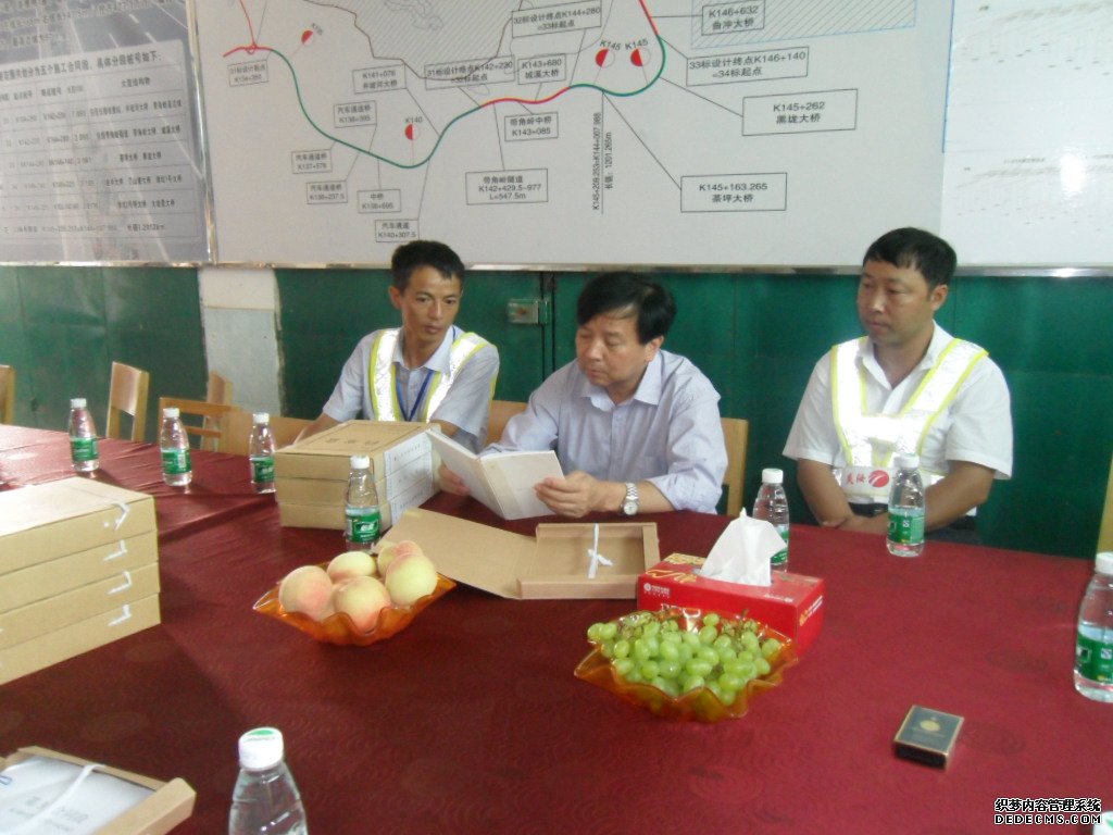 2011年8月4日,炎汝公司總經(jīng)理劉立國、副總經(jīng)理彭頭明、副總監王治、監理部部長(cháng)鄭曉城、工程部李學(xué)軍、工作站站長(cháng)等人對炎汝高速公路第七監理處進(jìn)行了專(zhuān)項治理檢查,檢查的內容為人員資質(zhì)及到位情況、監理日志和巡視旁站記錄、抽檢資料、安全、監理指令、廉政等資料,特別對安全和監理指令進(jìn)行了詳細的檢查。檢查結果比較滿(mǎn)意,特別對我們的安全和廉政工作進(jìn)行了表?yè)P。