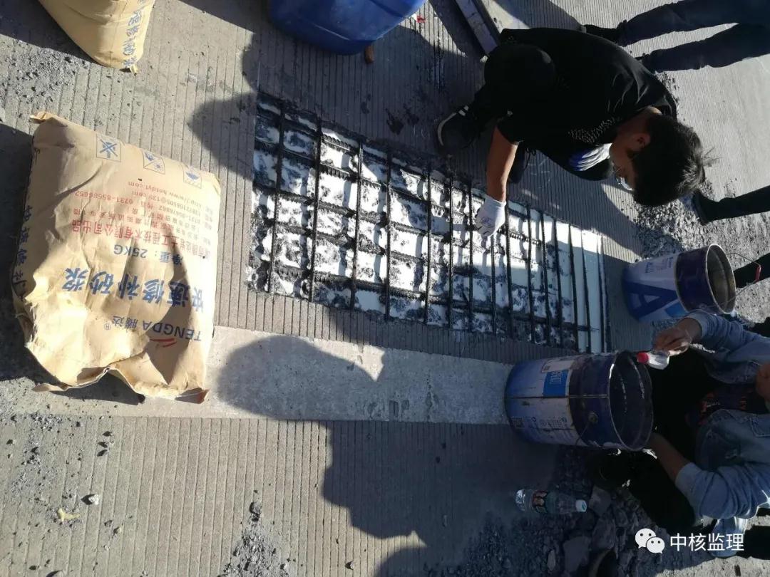 這一材料應用于項目水泥混凝土橋面坑槽、破損、剝落等病害的快速修復,優(yōu)點(diǎn)是抗壓強度高,固化迅速,粘接性能好;有很好的保水性能和抗裂性,且健康環(huán)保。