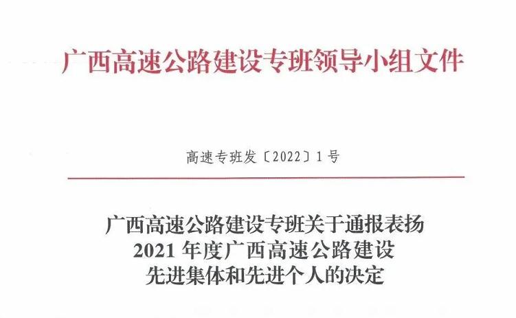 公司平天項目獲廣西高速公路建設專(zhuān)辦“2021年度先進(jìn)監理單位”